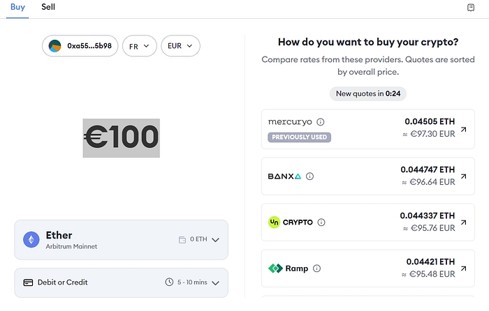 Way #2 : Buy your first cryptos directly in Metamask on Arbitrum Network 🦊